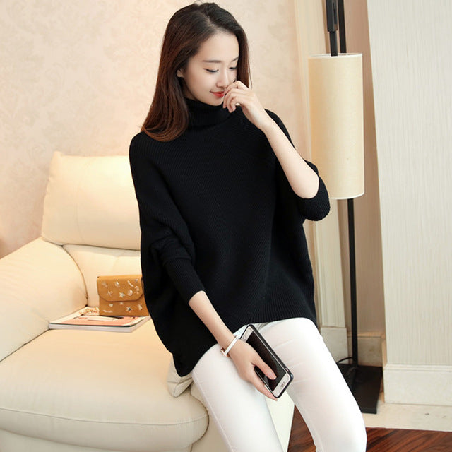 HAO HE SHEN Female winter sweater loose turtleneck sweater 2019 irregular Korean female backing sweater coat thick