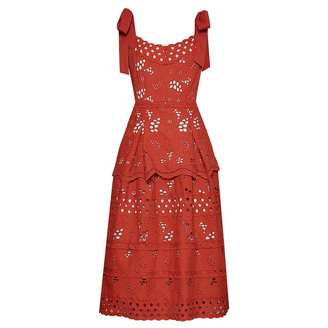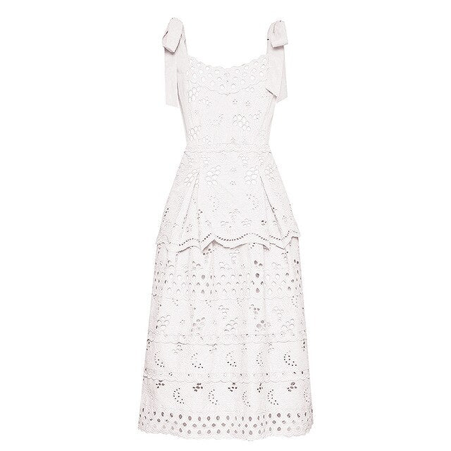 TWOTWINSTYLE Hollow Out Bowknot Dress For Women Spaghetti Sleeveless Square Collar High Waist Dresses Female 2020 Spring New